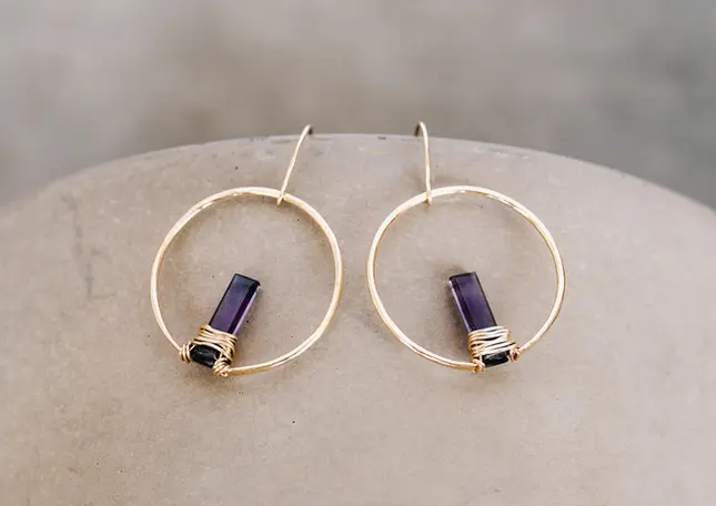 Elevate your style with our stunning Fluorite hoop earrings. Handcrafted with care by a fellow jeweller, these earrings feature elegant hoops adorned with stunning Fluorite gemstones.